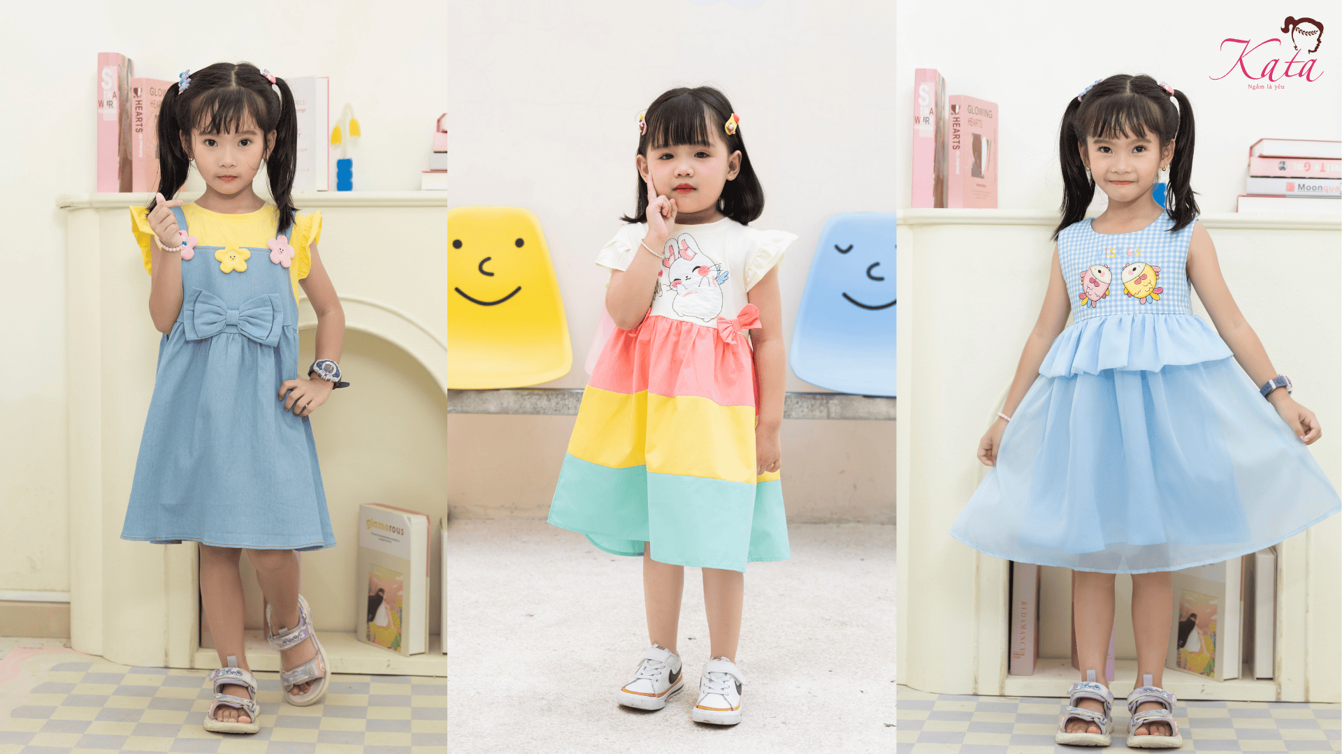 Đầm là trang phục lý tưởng cho bé gái, mang lại sự thoải mái và linh hoạt trong suốt ngày dài. Những chiếc đầm dáng xòe, dáng suông có màu sắc tươi sáng với họa tiết hoa, chấm bi, nhân vật hoạt hình sẽ làm bé nổi bật và dễ thương hơn bao giờ hết.
