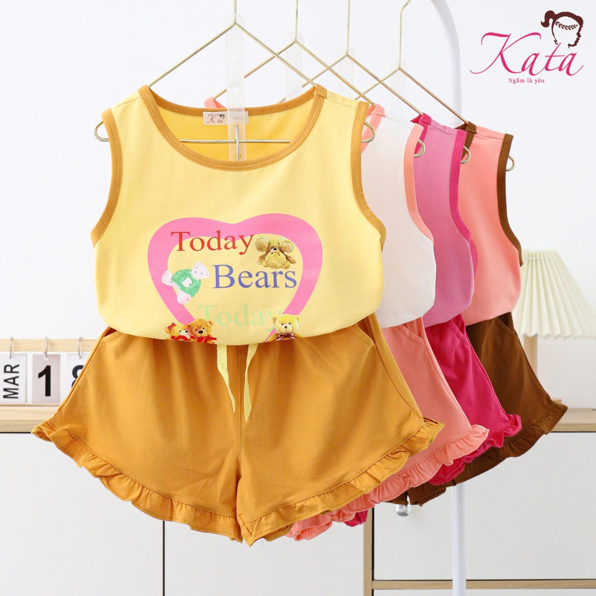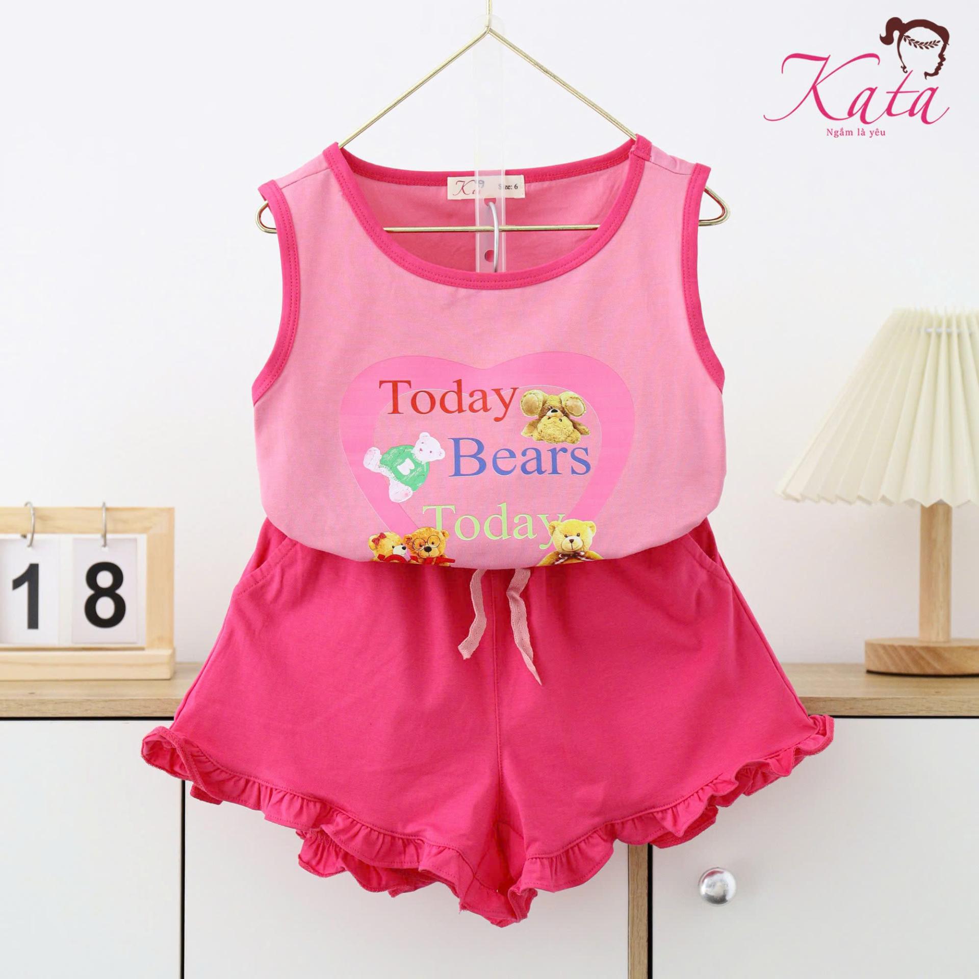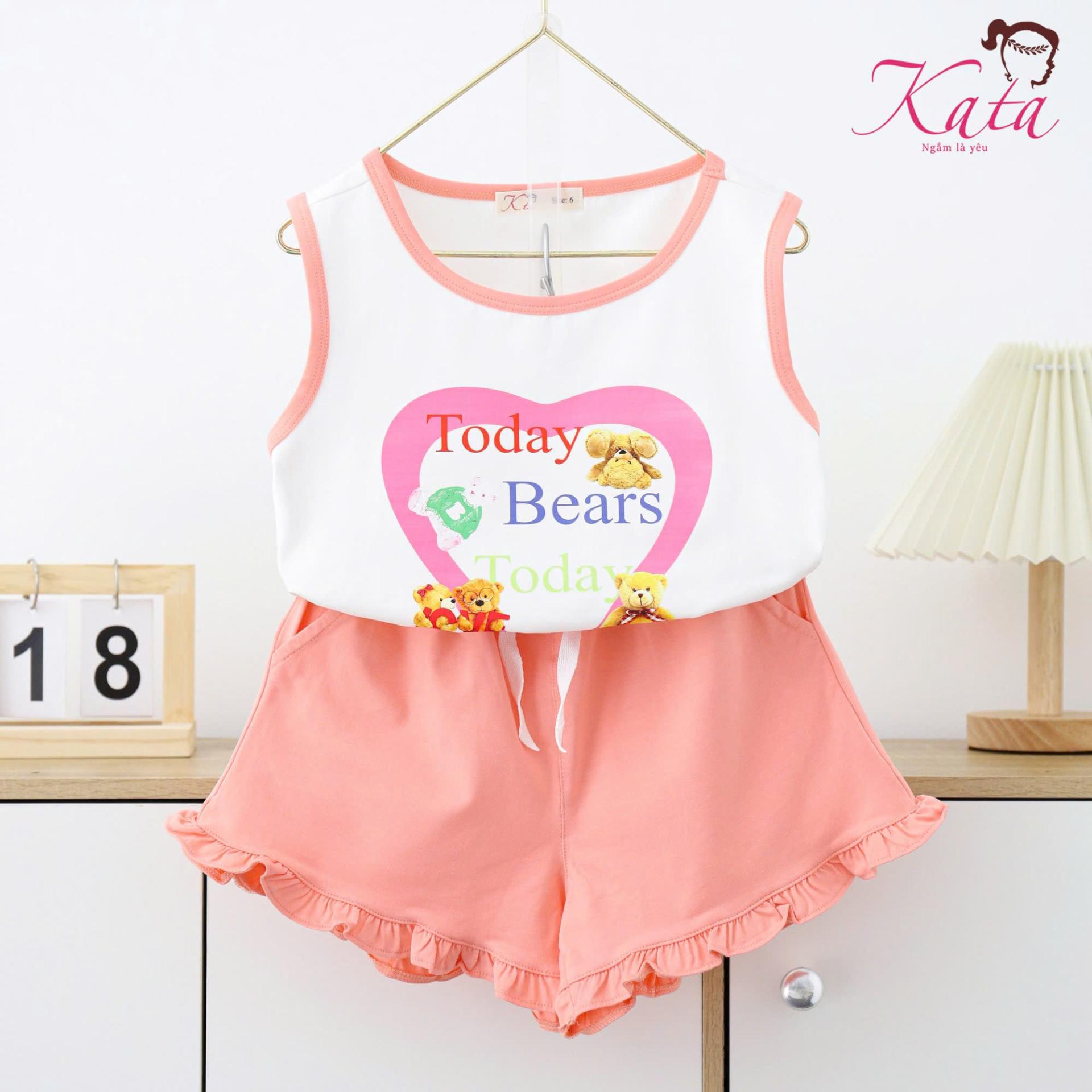 • Sản phẩm: Bộ bé gái Kata quần bèo lai áo ba lỗ in trái tim gấu today