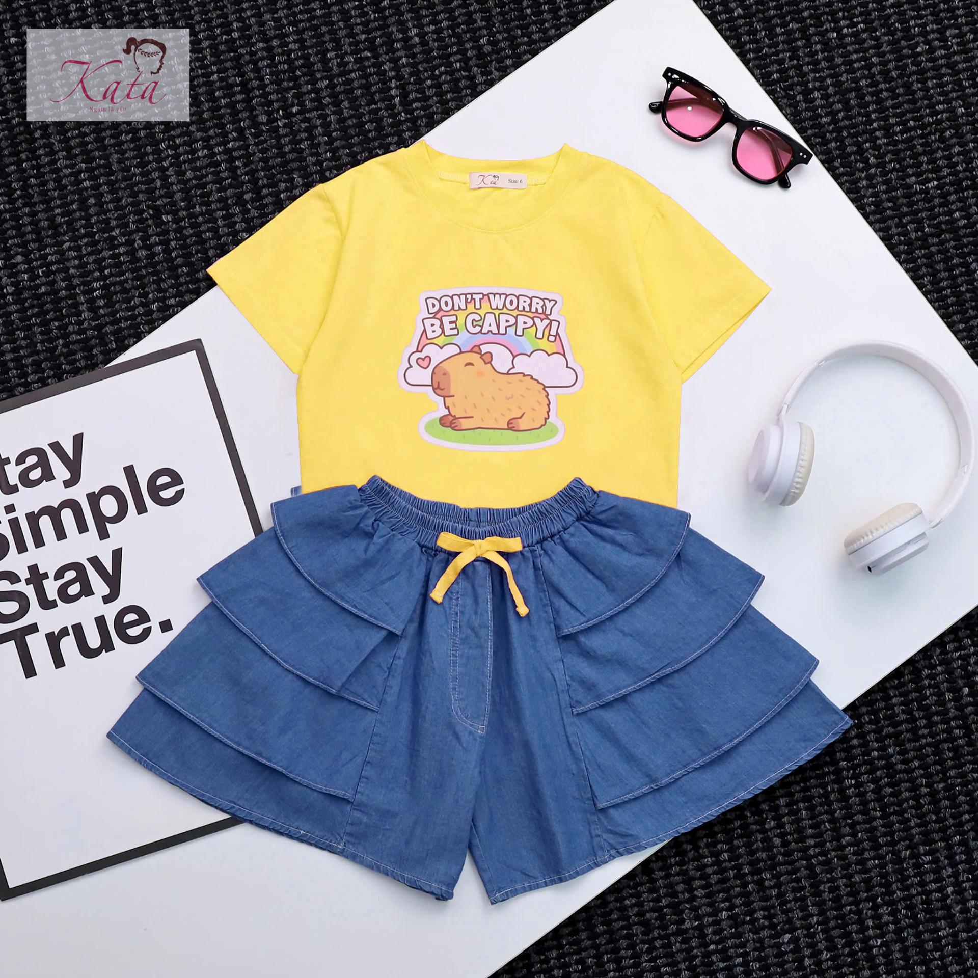 • Sản phẩm: Bộ bé gái Kata quần jean 3 tầng áo thun in DON'T WORRY BE CAPPY