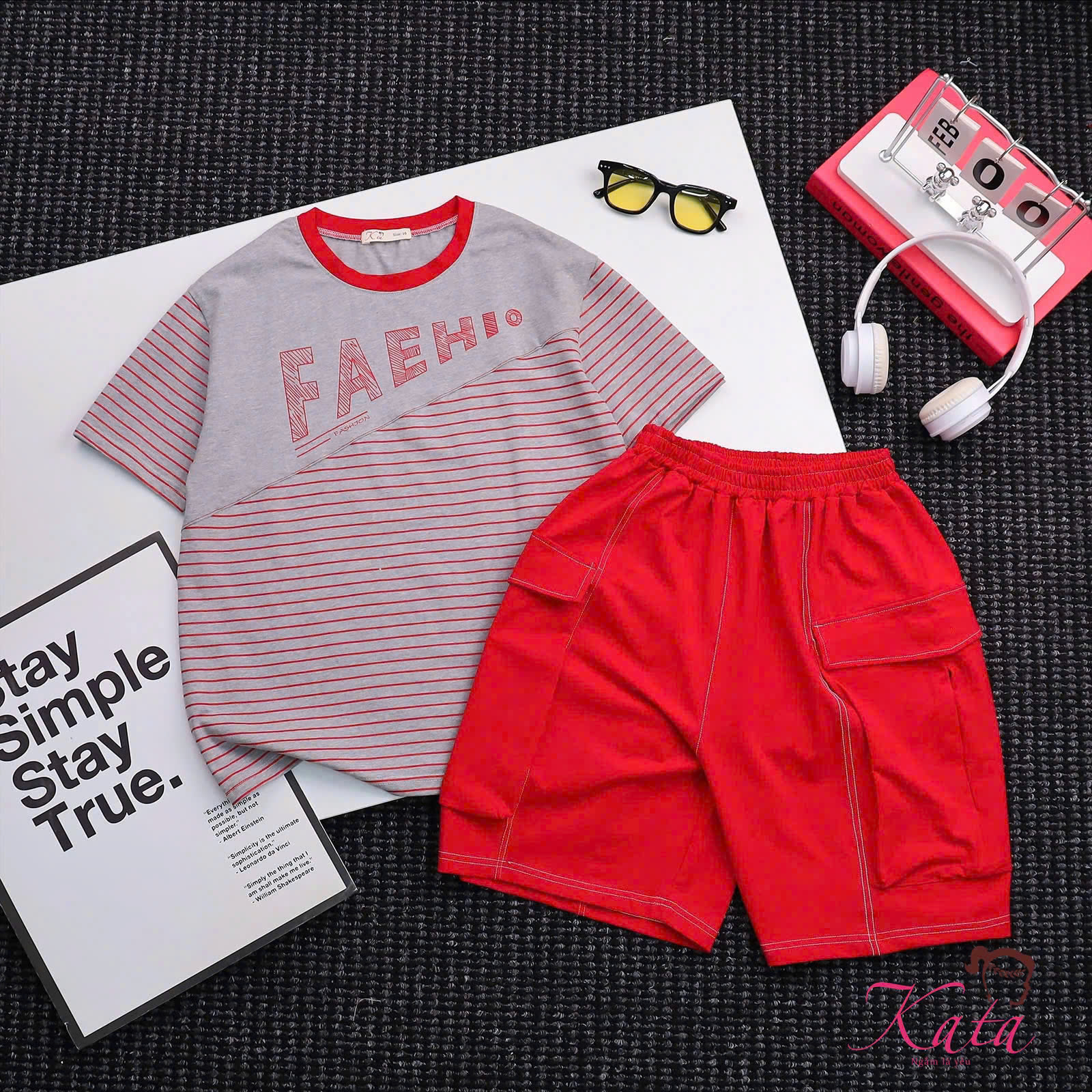 • Sản phẩm: Bộ thun bé trai KATA phối sọc in FAEHIO quần túi hộp - Set đồ cực ngầu cho bé trai cá tính!