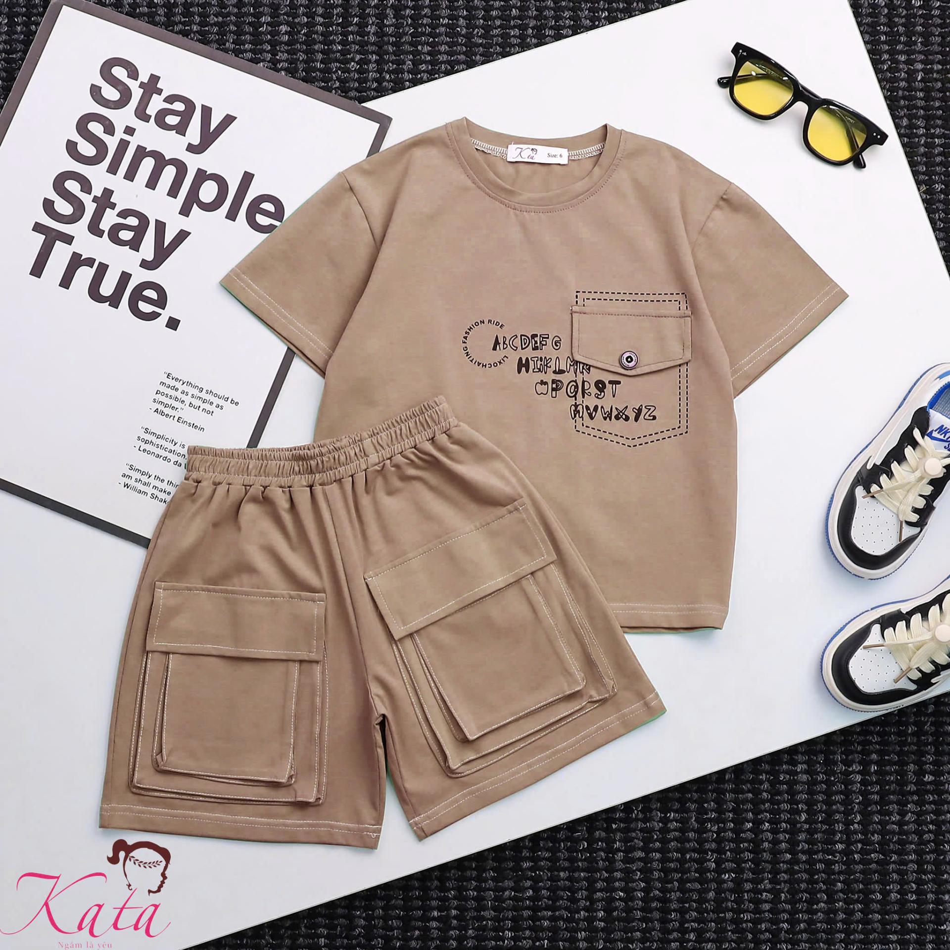 • Sản phẩm: Bộ thun bé trai KATA quần 2 túi chồng in chữ ABCDEFG - Set đồ cực ngầu cho bé trai cá tính!