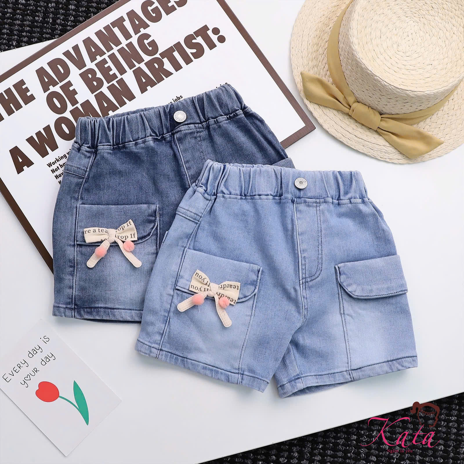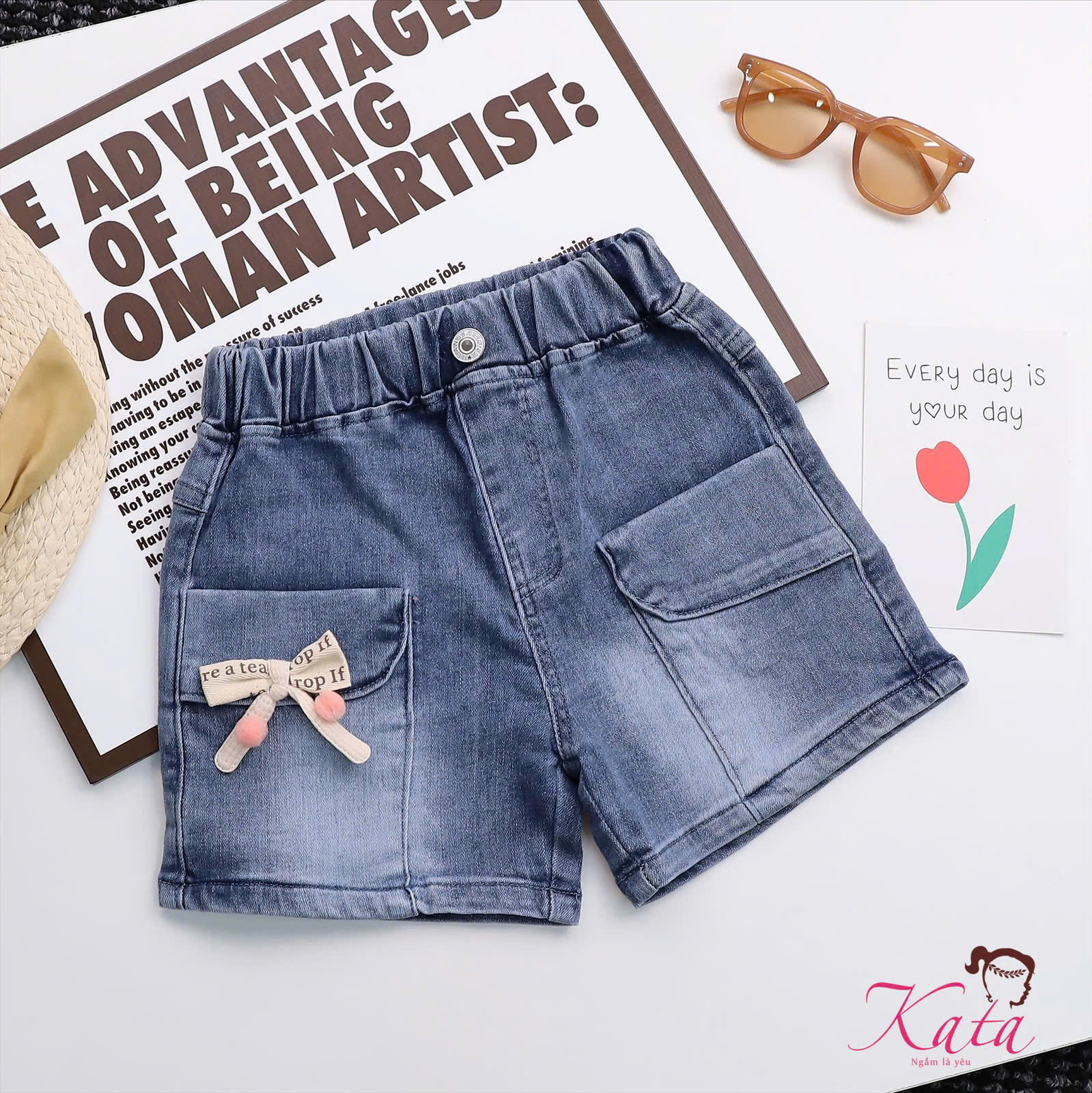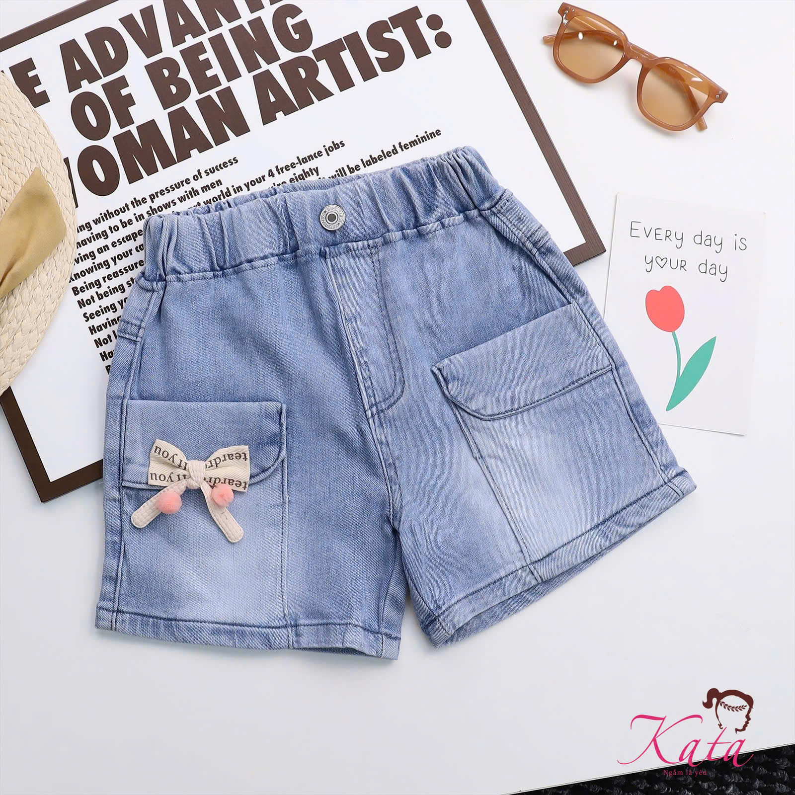 • Sản phẩm: Quần short jean bé gái Kata đính nơ